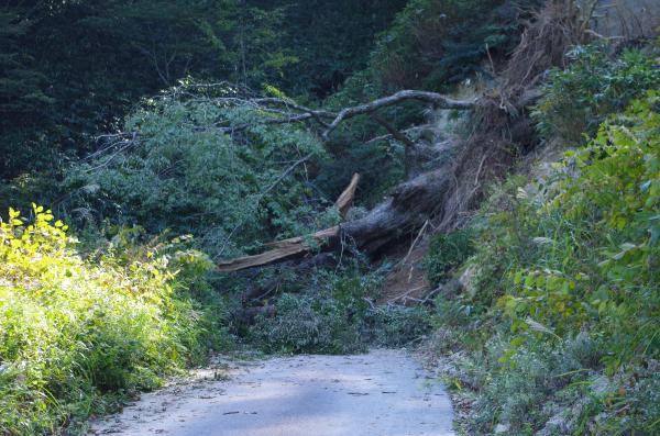 - 平水、林道が崖崩れで通行止め、30分の林道歩き