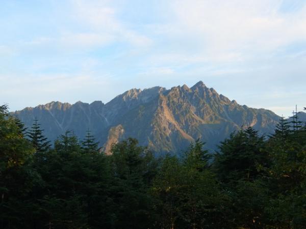 霞沢岳は島々と上高地を結ぶ徳本峠から西にのびる稜線にある200名山のひとつです。穂高の稜線のすぐ南に位置しますので、樹林帯をぬけると、穂高の山々が一望できます。