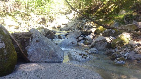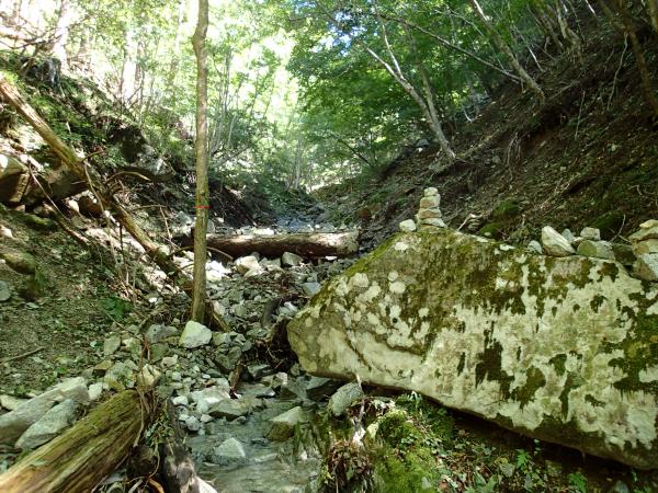 二俣を左へ進むとすぐに涸沢となり尾根を乗越して鬼石沢へ。