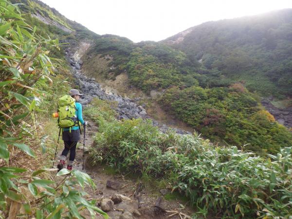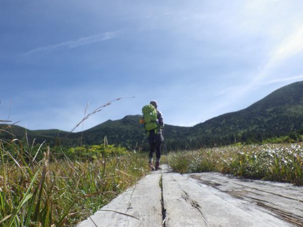 - 薬師神社から仙人岱避難小屋までは沢沿いの樹林帯を歩きますが、粘土質のぬかるみが多い為、ゲイターの着用をおすすめします。また、毛無岱へと降りる木の階段は急勾配で滑りやすいので要注意して下さい。