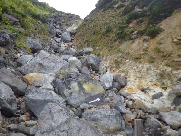 大岳への登りは強い風が吹き抜けていた