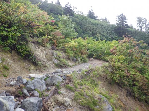 沢の水がチョロチョロと流れ出す登山道は、グチャグチャの粘土質でぬかるみが酷い