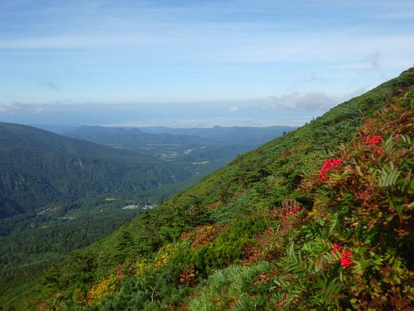 相変わらず足は痛いけど、遠くに見える日本海と次の日登る予定の岩木山が