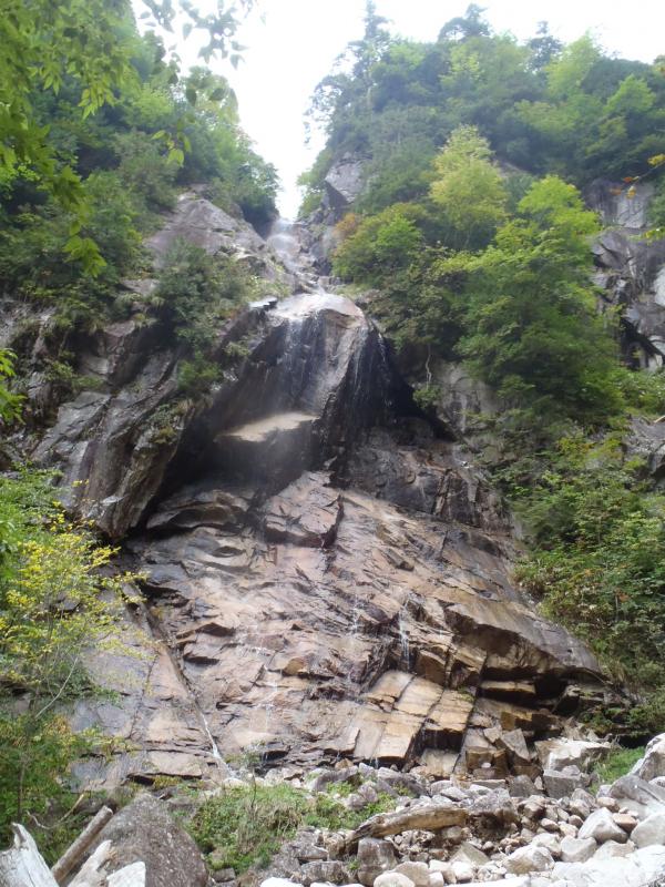- 表参道登山口-90分白河滝-30分尾根-35分山頂-南岳往復-20分-有明山荘60分