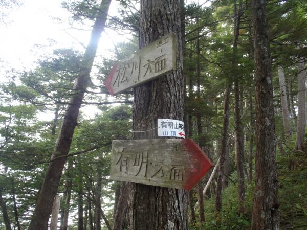 有明山の登山コースは、黒川沢に沿って登る表参道(行者道)、中房、有明荘からの裏参道