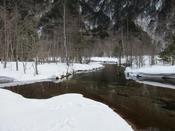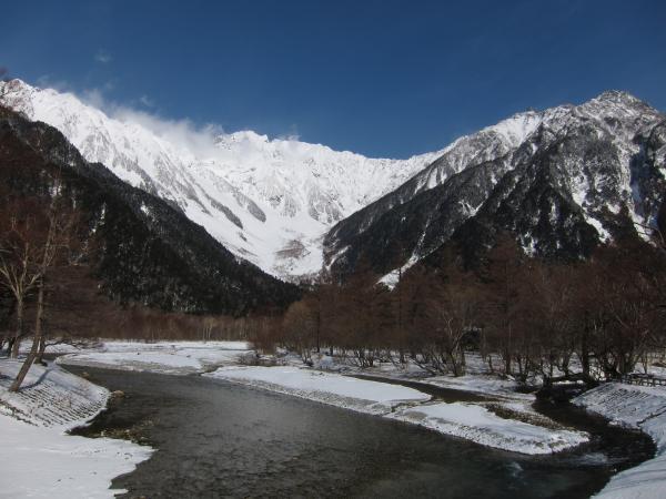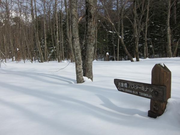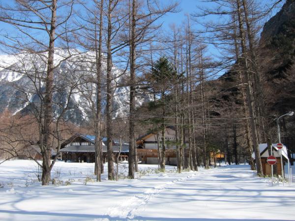 夏とは少し違う冬の上高地、高低差も殆どないのでスノーシュートレッキングにはオススメです。