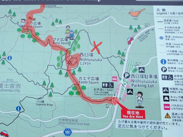 西臼塚遊歩道内は、ナラ広場→ブナ広場→西臼塚→カエデ広場→駐車場と進むのが良さそうです。