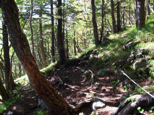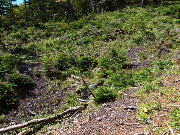 倒木地帯は倒木の下をくぐったり、跨いだりと少々荒れています。