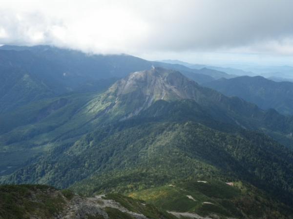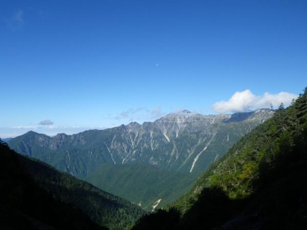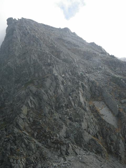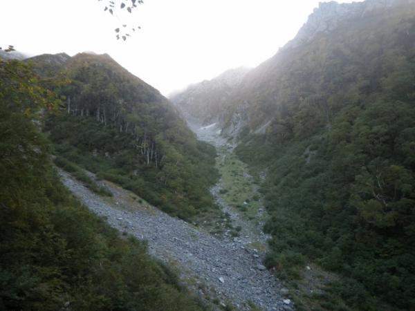 初日は前日から前穂高に登っていた佐竹君と穂高岳山荘で待ち合わせる予定だったので一人で白出沢から登りました。白出沢の急登はガレているので自分が落石を起こさないのはもちろんのこと、上から下ってくる人の動きにも注意して歩く必要があります。ヘルメットの装着をお薦めします。また登りはマークが見つけ難く踏み後から外れるとかなり浮石が多くなるのでしっかりと周りを見ながら歩きました。穂高岳山荘が見えてからが長いのでキツイかったです。