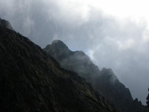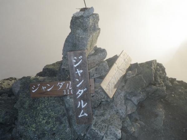 二日目はいよいよ稜線歩きに。午後から天気は下り坂だったので早朝5:00に出発。朝から残念ながらガスっていました。が、ジャンダルムのピークに立ったちょうどその時にガスが晴れて朝日が差し込みました。