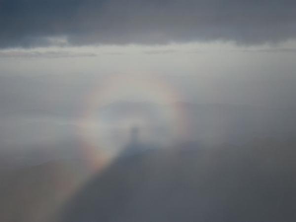 目の前にはブロッケン現象!!初めて見ましたがかなり神秘的で大興奮!!意気揚々とそのまま一気に西穂高まで楽しみながら歩くことができました。途中、雷鳥にも遭遇してラッキーな山行となりました。