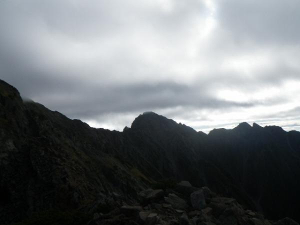 二日目:穂高岳山荘(30)~奥穂岳(50)~ジャンダルム(80)~天狗のコル(60)~間ノ岳(40)~西穂岳(40)~西穂高山荘(60)~新穂高ロープウェイ西穂高口