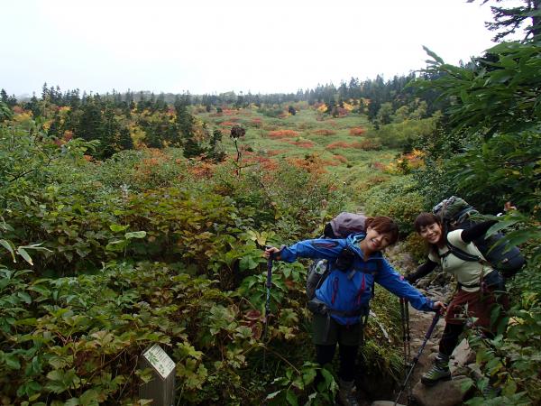 - 一日目 明星荘9:30-10:15黒沢出合10:40-富士見平-13:00高谷池ヒュッテ テント泊