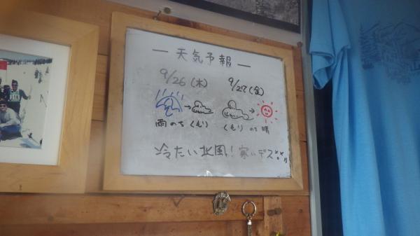 それにしても、九月で雪が降るとはさすが山。小屋の中でも寝る時はすっごく寒くてびっくりしました。小屋の中でもいつものダウンとダウンパンツが大活躍。普段テント泊ばかりの私ですが、小屋泊の快適さに目覚めてしまいそうです・・・。