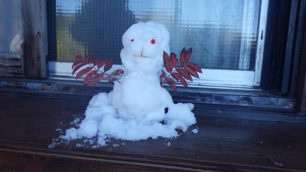高谷池ヒュッテ到着。テント代(400円)を払ってテント場に行ったのですが、雨と共に冷た~~い北風に吹かれた後一瞬で予定変更となりました。小屋に素泊まりで泊まらせていただくことに・・・。(4500円)そして本当は一日目で火打山、二日目で妙高山に登る予定だったのですが一日目は停滞を決意しました。ナント!この日は他に予約のお客さんはいなく、私たち二人の貸切状態ということでした。昼頃着いてのんびりしていたら、窓の外で白いものが舞っています。一瞬目を疑う景色でした。初雪だったそうです。どうりで寒いわけですよね。
