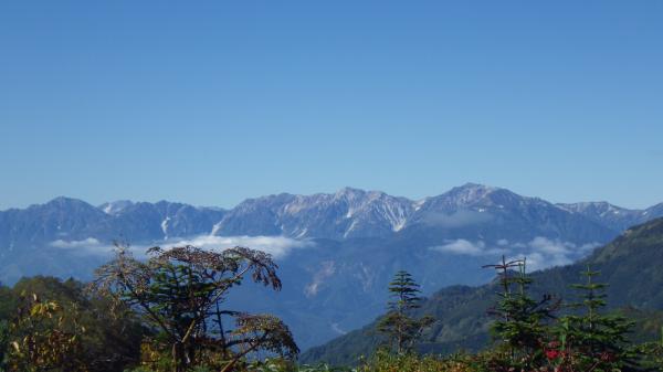 - 笹ヶ峰駐車場~(60分)~黒沢橋~(150分)~富士見平~(50分)~高谷池ヒュッテ(小屋泊)