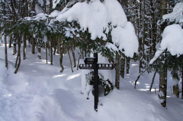 - 渋の湯(120分)唐沢鉱泉分岐(60分)黒百合ヒュッテ(5分)中山峠(90分)天狗岳直下で折返し(50分)黒百合ヒュッテ(60分)渋の湯