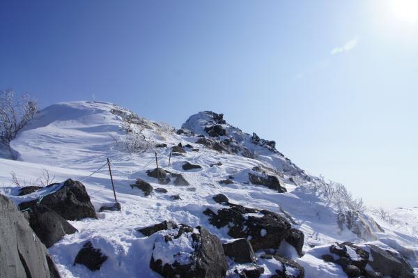 サラサラの雪だったので 中山峠先から森林限界でたあとの登りは少し登りづらい箇所も