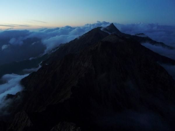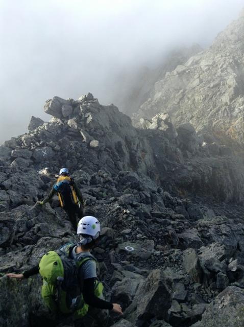 2日目は雨こそ降りませんでしたが、濃いガスの中少し濡れた悪い岩場を通過するのに神経を使いました。穂高岳山荘には11時前には着いたのですが、ガスが濃く回復の見込みもなかったので午後は小屋でまったり過ごしました。