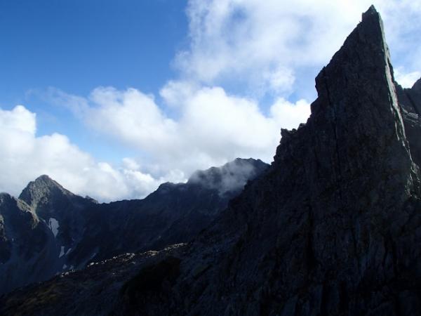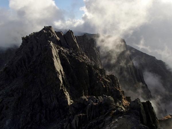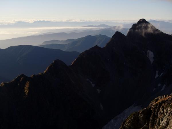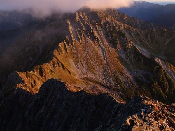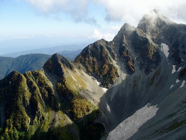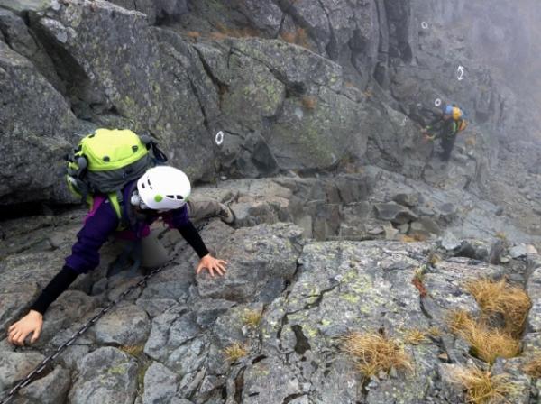 北穂から奥穂へは涸沢岳手前でクサリが連続します。