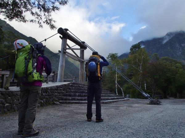 朝4時にあかんだな駐車場に入り、少し仮眠をとって6時20分の始発バスに乗って上高地入りしました。前日の予報では2日目以降の天気があまり思わしくなかったので、初日の涸沢泊の予定を変更して一気に北穂高小屋まで上がることにしました。これが大正解で、北穂高小屋からの素晴らしい夕焼けと日の出を拝む事が出来ました。
