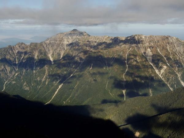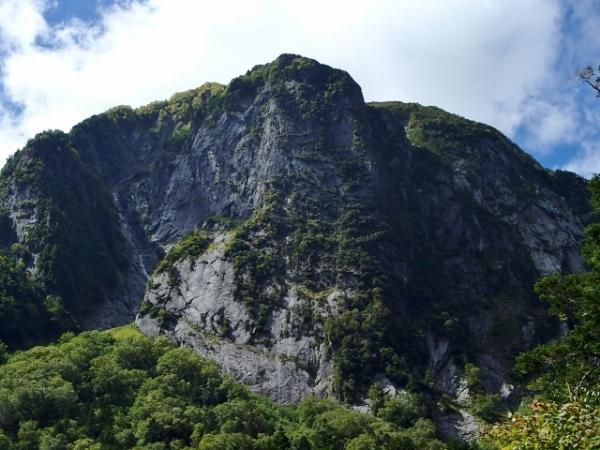 横尾から登山道となり、左手に迫力満点の屏風岩を見ながら谷筋を行きます。