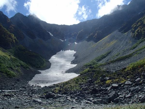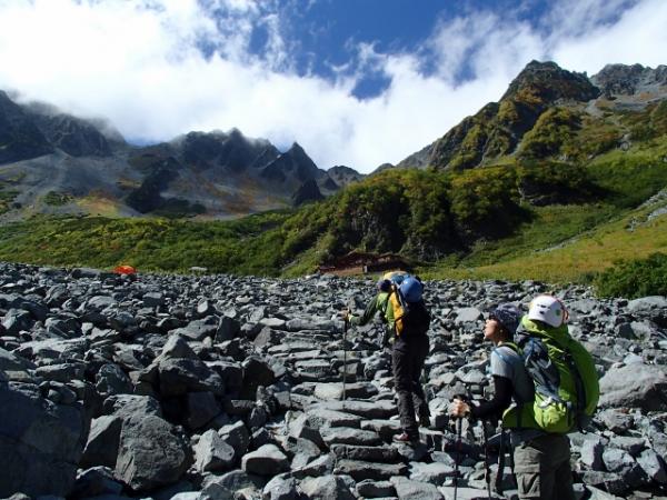 涸沢手前で少しガレ場が出てきますが問題なし。