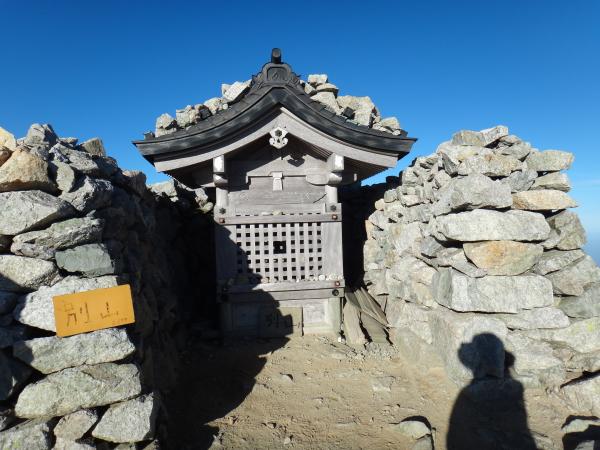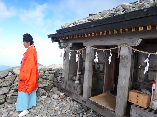 雄山に到着。拝観料を払ってお払いをしてもらいました。太鼓の音と宮司さんの透き通った声に身が引き締まります。他の山岳信仰は女人禁制が多い中、立山講では女性の入山を許していたそうです。画期的で何だか親しみが湧きました。ここからの眺めも抜群です。黒部五郎はじめ雲ノ平方面が見渡せました。