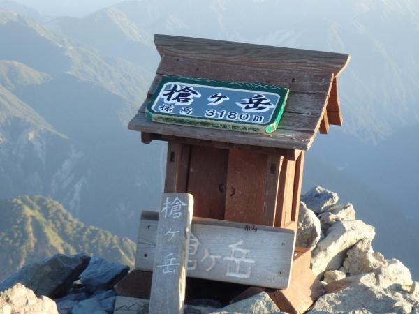 早朝の槍ヶ岳山荘にお泊りの方々が行動し始める時間帯は槍の穂先の登りは渋滞します。今回は5:30頃に取り付きましたが結構渋滞しましたが30分程で頂上に。