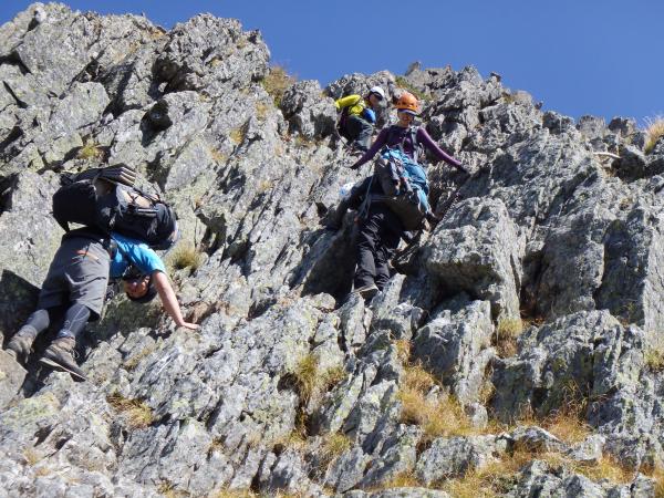 岩場の危険個所が多いコースなので、荷物は出来るだけ軽量化を図り危険個所で荷物に振られないように注意しましょう。
