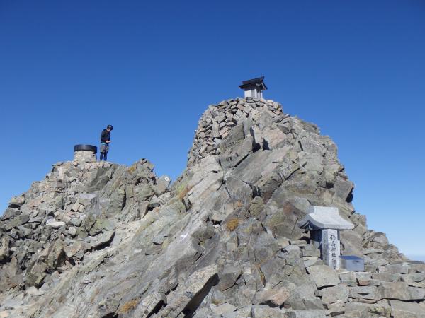 2日目:殺生ヒュッテ(35)槍ヶ岳山荘(20)槍ヶ岳頂上(10)槍ヶ岳山荘(40)飛騨乗越(15)