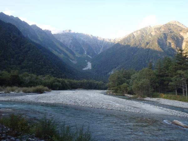 - 1日目:上高地バスターミナル(5)河童橋(30)明神(40)徳沢(60)横尾(45)一ノ俣(60)槍沢ロッジ(150)天狗原分岐(120)殺生ヒュッテ テント泊