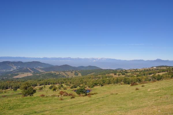 菅平牧場がすでに標高1600mほどあるので、駐車場に車を止めて振り返ると、もう北アルプスの絶景が広がります。