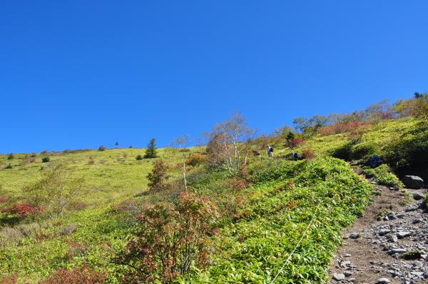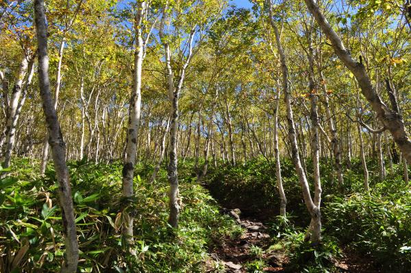 根子岳へ向かって少し登るとダケカンバの樹林帯に。