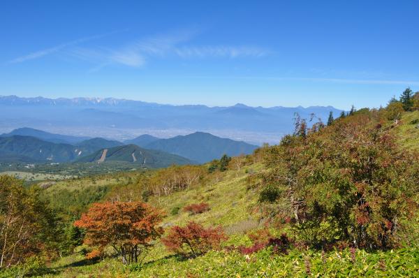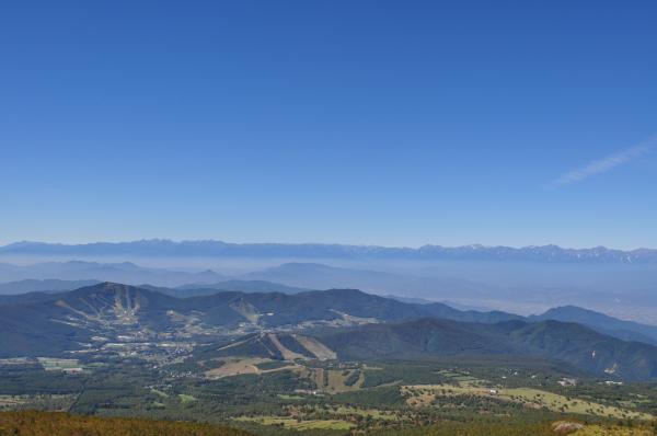 ここから見えるお山は、御嶽山、乗鞍岳、焼岳、穂高岳、槍ヶ岳、爺ヶ岳、鹿島槍ヶ岳、五竜岳、唐松岳、白馬岳、戸隠山、高妻山、雨飾山、黒姫山、火打山、妙高山、八ヶ岳、蓼科山、富士山。などなど。