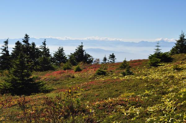 - 菅平牧場→(110分)→根子岳頂上→(95分)→四阿山頂上→(130分)→菅平牧場