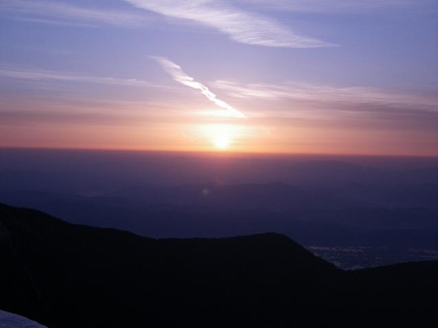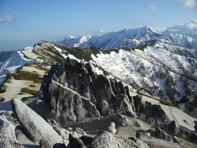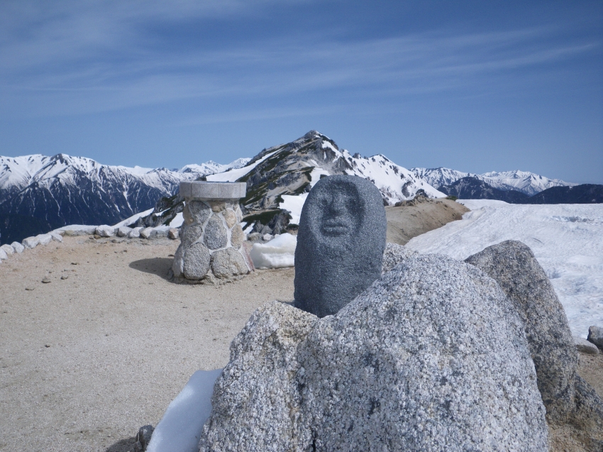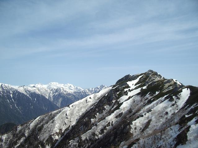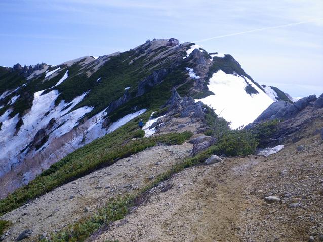 合戦小屋から先を登っていくと、左手に遠く槍ヶ岳と その奥に穂高連峰が見えてきて、
