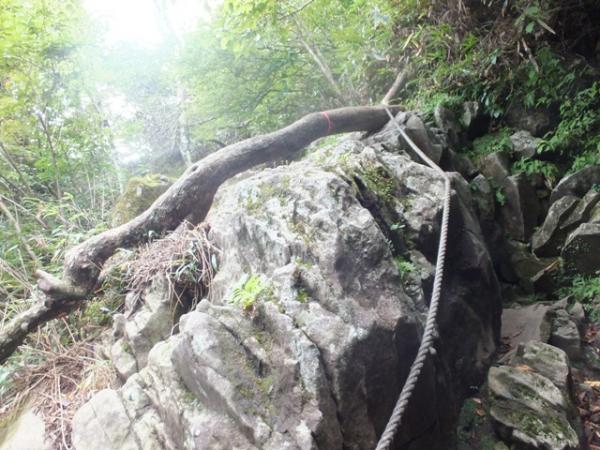 北岳から中岳への登山道には、小さな岩場が数箇所あります。