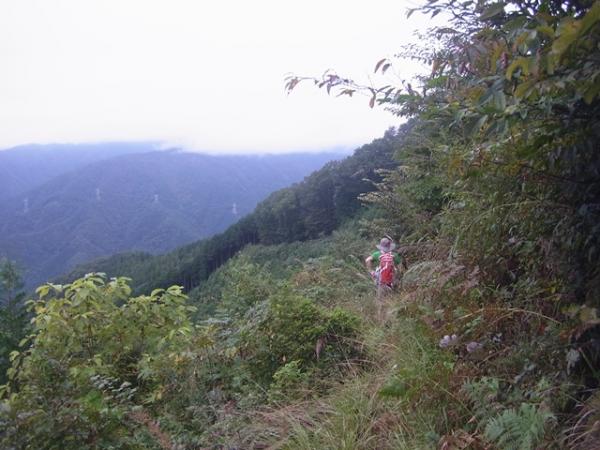 魚尾道峠からの下山は途中で林業のネットで遮られ通れなくなっていました