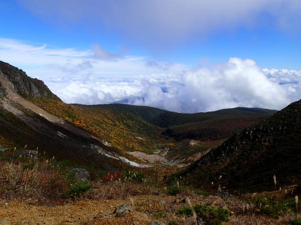 更に足取りは軽く鞍部に到着。すると沼ノ平の豪快な景色〜⎝(@д@)⎠