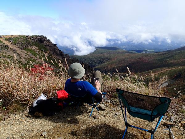 景色とご飯を充分に満喫し、いざ安達太良山へ。思ったよりも早く着くのも歩きやすい稜線のおかげ♫