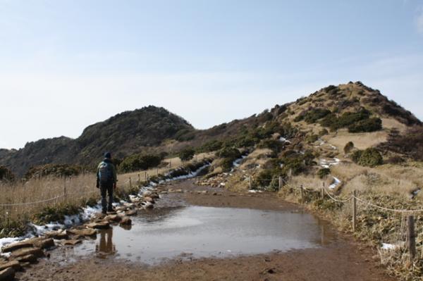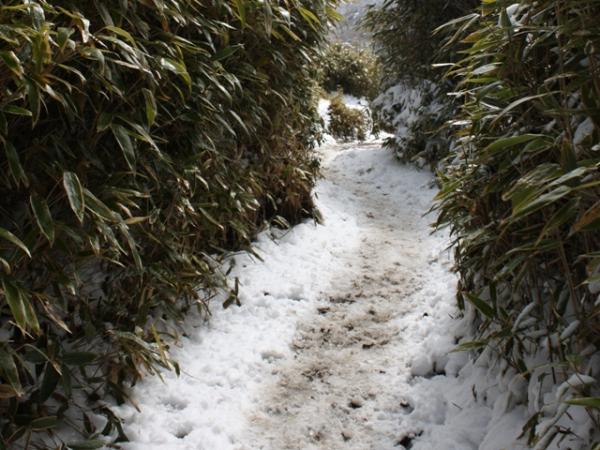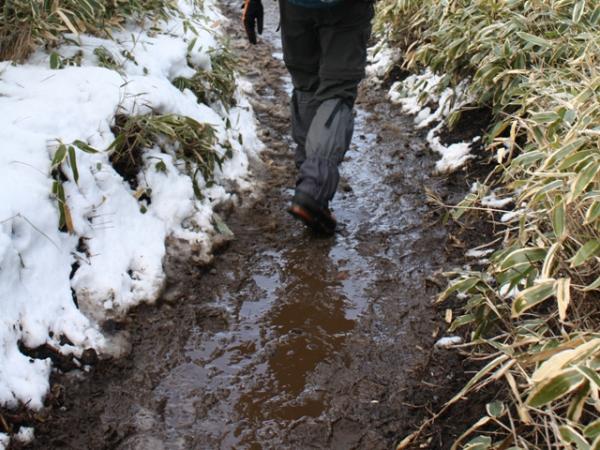 - 三月ですがまだ、夜は冷え込み、霜が下りており朝はサクサク踏みながら歩きましたが、昼過ぎると霜が融けて、ぬかるみや水たまりになって非常に歩き難いです。スパッツの着用をおすすめします。滑りやすいので注意して歩いてください。