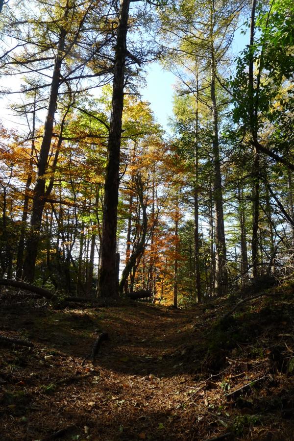 落ち葉の道をサクサクと歩き、頭上は紅葉。