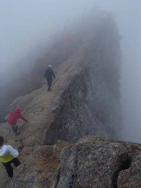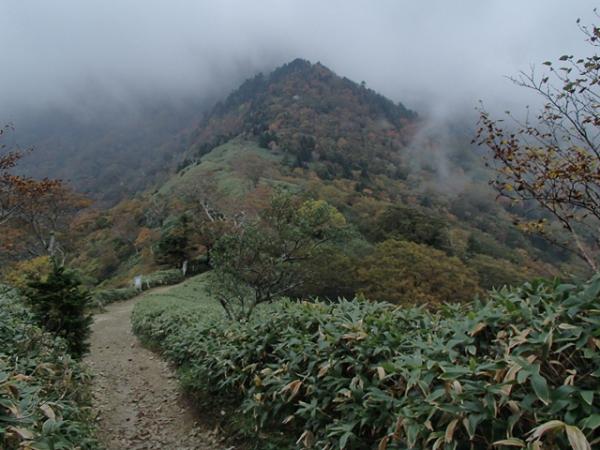 前日の台風の名残か、山頂付近は雲に覆われ展望がきかず、本来なら紅葉できれいな山頂からの眺めが全く見ることが出来なかったのは残念でしたが、雨に降られなかったのはせめてもの救いでした。