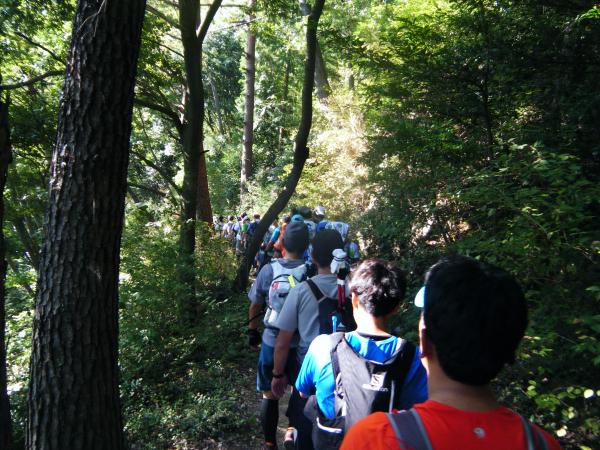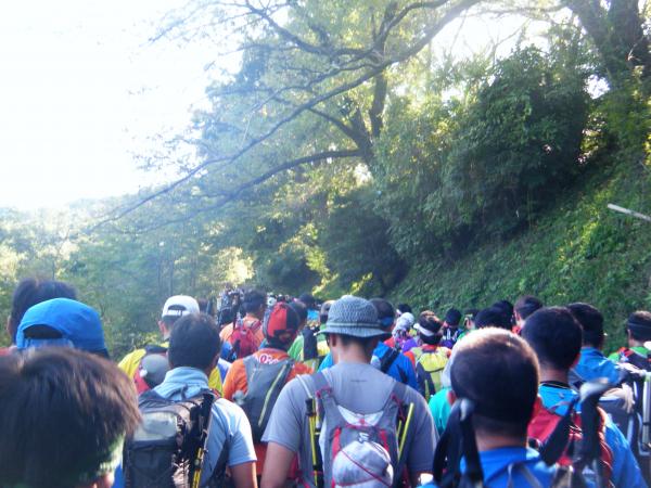 スタート直後から渋滞となり、市道山の分岐まで全然走れませんでした。その先は登りになれば渋滞する状況が第1関門の浅間峠まで続きました。ここまで距離にして約22.5キロ地点の長い渋滞トレイルでした。
