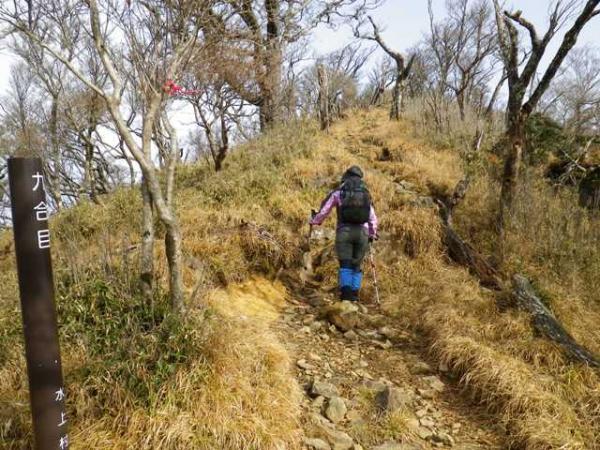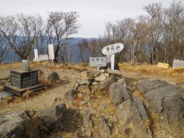 - 参道出合11:00~八丁坂3合目11:10~市房神社~馬の背6合目12:20~7合目12:40~9合目13:20~頂上13:35(休憩)~心見の橋14:30~
