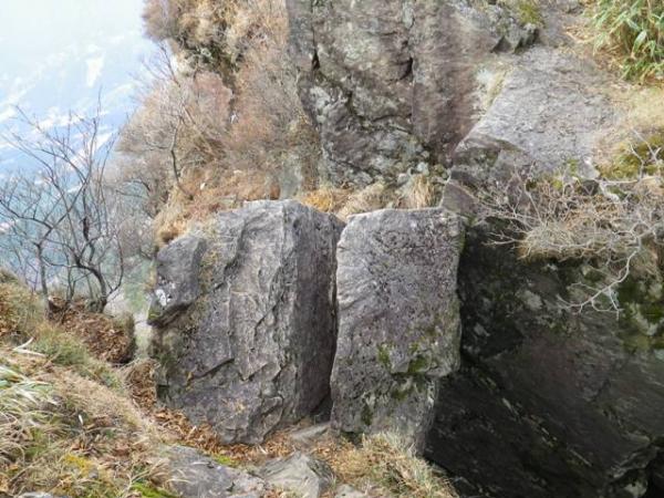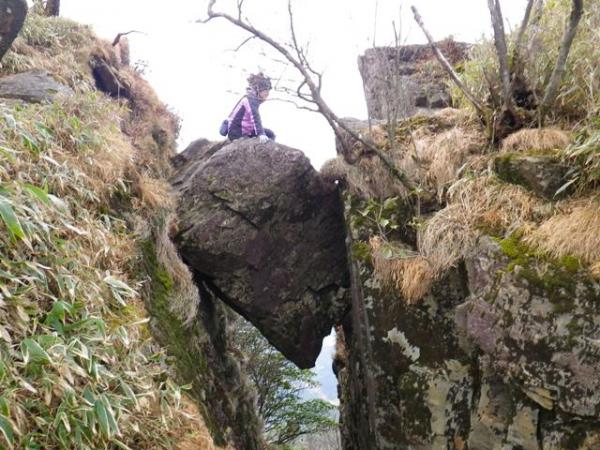 山頂から10分程行くと心見の橋(チョックストーン)があります。