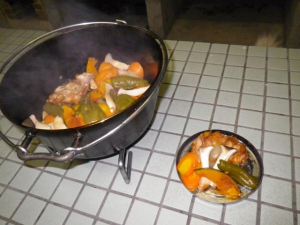 チキンと野菜をダッチオーブンで蒸し焼きにしました。驚くほど素材の味が際立ち最高でした(^^)/