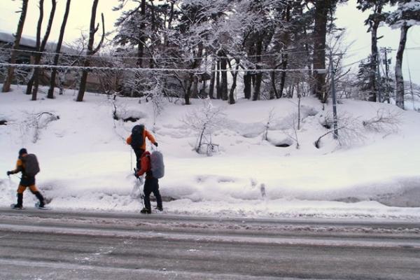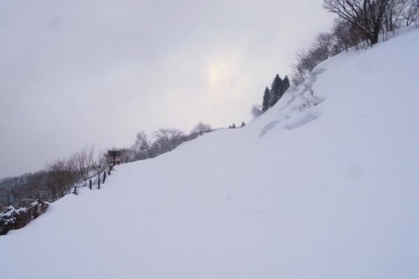 - 前日の雪のためか、国道から勝原スキー場駐車場までの道は、車通行できず。