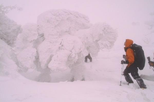 夏に来た時は、大雨。今回は、頂上まで残りおよそ300メートルの地点でホワイトアウト。吹雪いてきたので頂上行きは断念し、シャクナゲ平まで降りてきました。